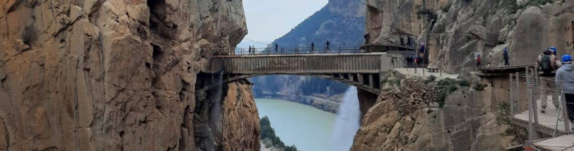 Nur ein paar Hintergrundinformationen. El Camino del Rey, der Königsweg oder El Caminito del Rey, der Königsweg, ist ein Wanderweg, der von Álora in der Nähe von Málaga nach Campillos durch die Schlucht El Chorro führt. Der Wanderweg ist drei Kilometer lang und maximal einen Meter breit und verläuft 100 Meter oberhalb des Flusses El Chorro" an den Felsen entlang.